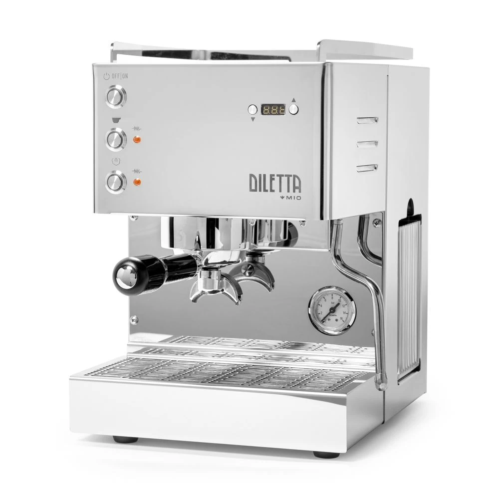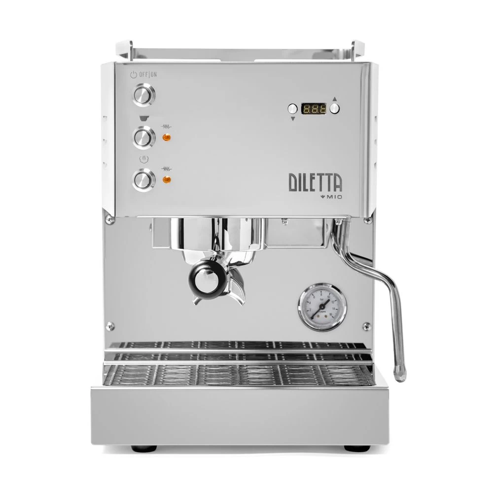 Brew better espresso from home with the Diletta Mio espresso machine. This hand-built, Italian espresso machine offers the performance you want without overwhelming you with programming and complexity. This machine’s hands-on interface will help you learn the ins and outs of pulling exceptional shots and frothing milk at home. The Mio’s PID controller and brew boiler give you quick warm up times and stable tempatures, and the digital display even doubles as a handy shot timer. Finally, the Mio’s eco mode helps you to save energy without eliminating functionality. Bonus! This gorgeous, powerful espresso machine comes in stainless steel, black or white colors.