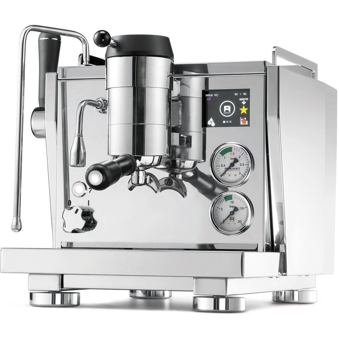 Quality: Meet technology with the Rocket Espresso R Nine One. Built with the utmost in home espresso in-mind, the R Nine One builds from the design of Rocket Espresso’s commercial brethren with a saturated group, stainless brew and service boilers, and programmable dosing. The R Nine One adds to this formidable foundation with both manual and programmable pressure profiling—giving you 5 profiles for any coffee recipe imaginable. Profiles are set through the R Nine One’s color touchscreen, or by hand with the group-mounted control knob. Other class-leading features include power scheduling to preheat your machine before use, PID controller temp management, and a full-stainless case and frame. If you’re looking for the next step in Italian espresso machines, the R Nine One is hard to beat.