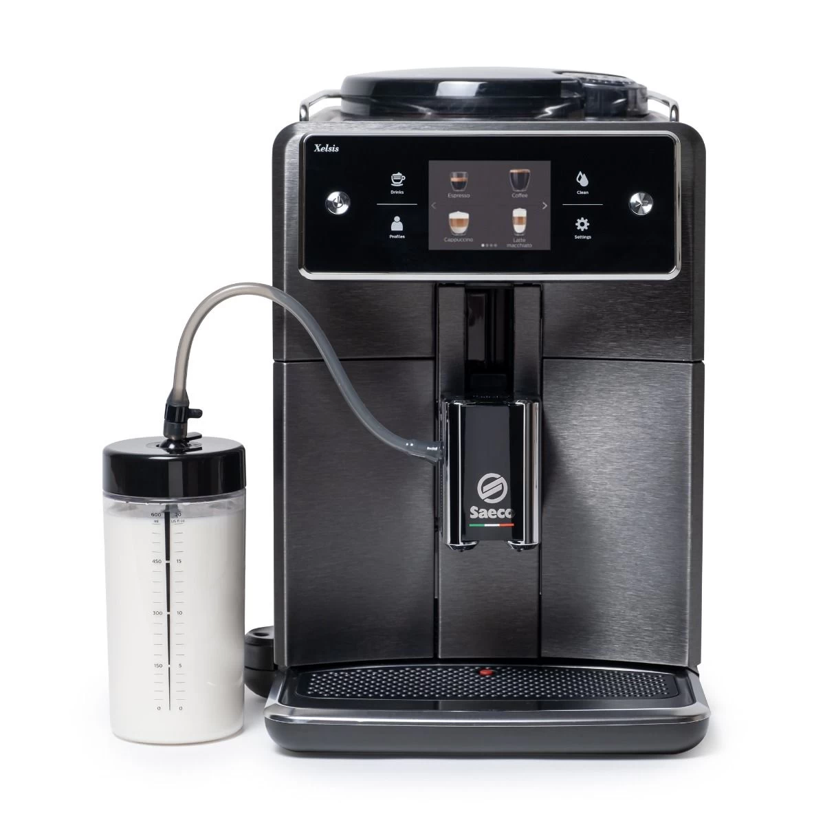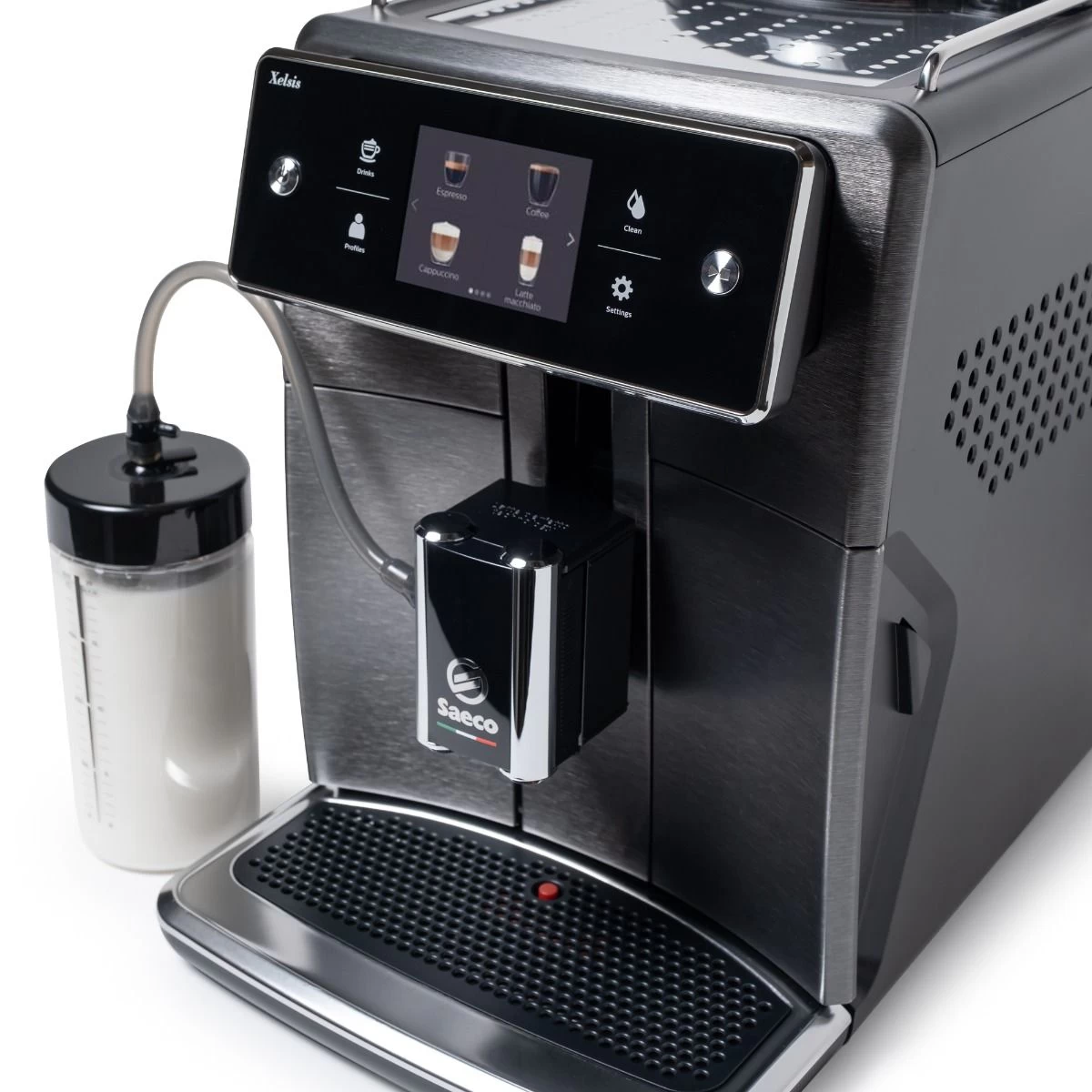- Refined Ergonomics: From a front-access water tank to adjustable spouts and a scratch-resistant drip tray, the Xelsis brings the best from Saeco’s design options.